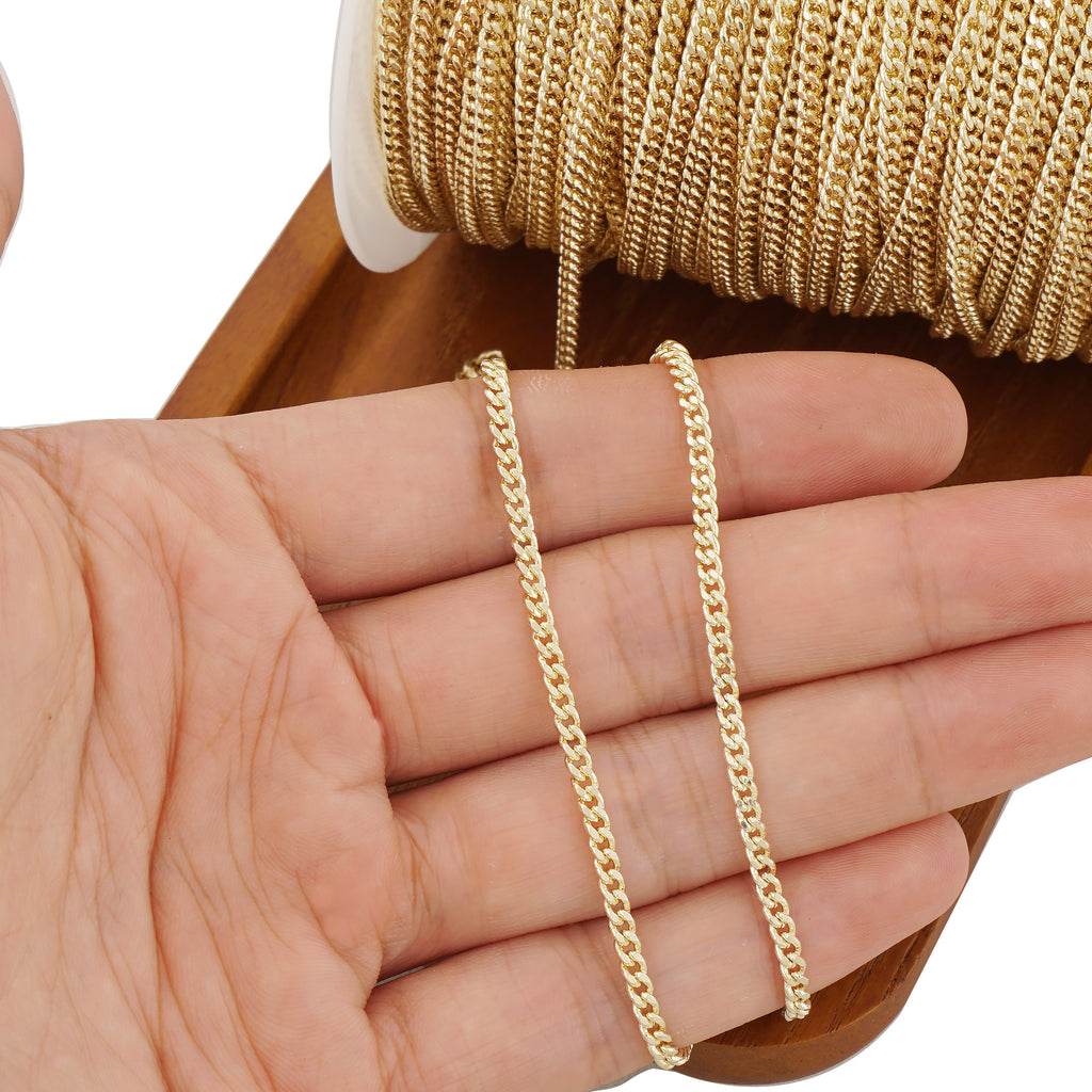 14k gold filled for lasting quality and durability Perfect for creating custom jewelry pieces Ideal for both necklace and bracelet creations Unfinished chain allows for personalized finishes