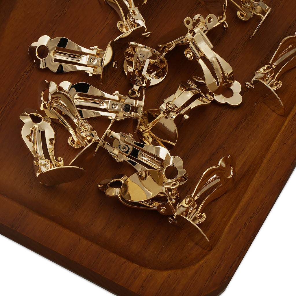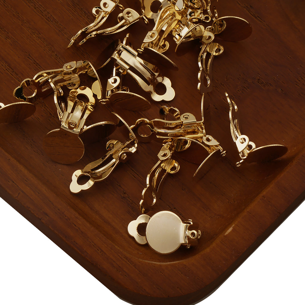 10PCS 14K Gold Filled Non Pierced Clip on Earring Component with 10/12mm Flat Pad, Glue on Pad Blank Setting for Earring Making 104245