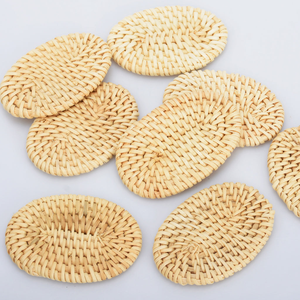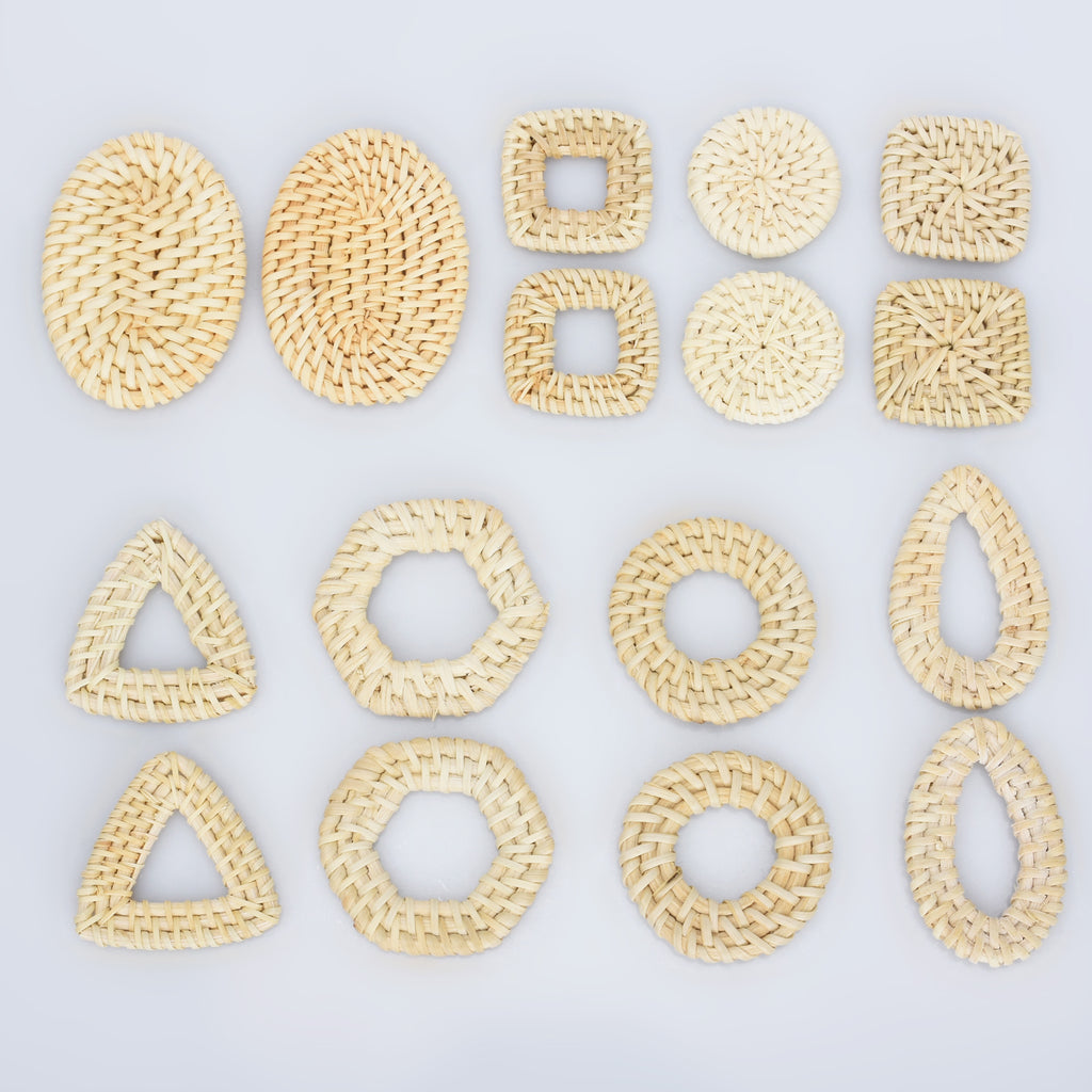 Material: Natural Rattan Size: 10282850-42*60mm 10282851-30*30mm 10282852-30mm 10282853-30mm 10282854-40mm 10282855-45mm 10282856-40mm 10282857-50*35mm Please allow 1- 2mm error due to manual measurement and make sure you do not mind before ordering. shape: 10282850-Solid oval 10282851-Hollow square 10282852-Solid round 10282853-Solid square 10282854-Hollow triangle 10282855-Hollow hexagon 10282856-Hollow round 10282857-Hollow teardrop Note:Due to variations in monitor display, the color of products may slightly be different when received in person. We do our best to take photos so that they appear true to color. weight: 10282850-65.6 grams 10282851-62 grams 10282852-62.2 grams 10282853-62.6 grams 10282854-61.8 grams 10282855-63.7 grams 10282856-62.66 grams 10282857-63.6 grams Quantity:2pcs