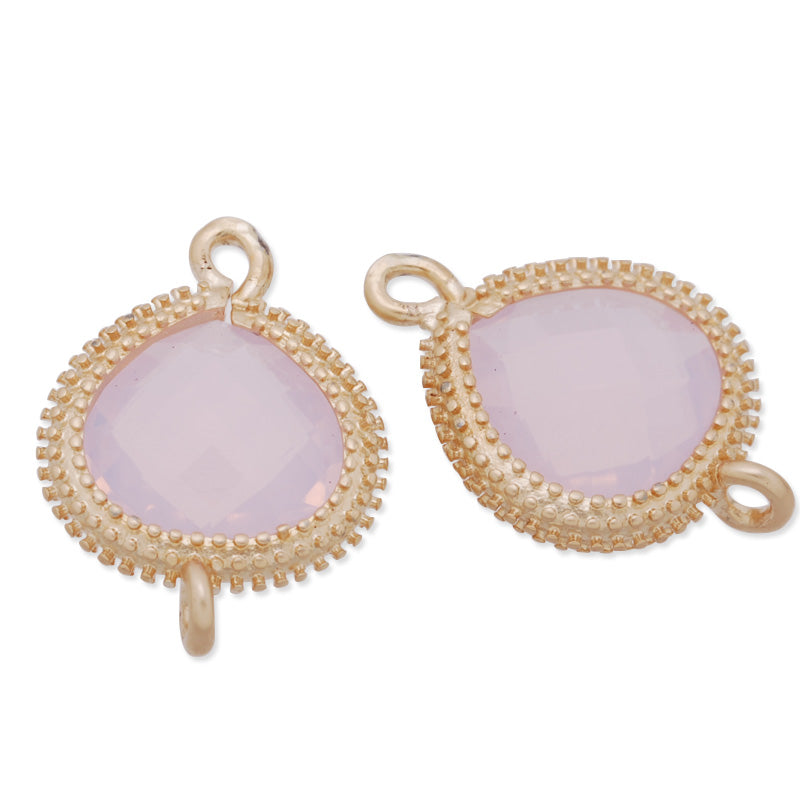 13x18.5mm matt gold plated framed glass,Faceted glass,rose water opal,connectors,gemstone bezel,Sold 5pcs/lot