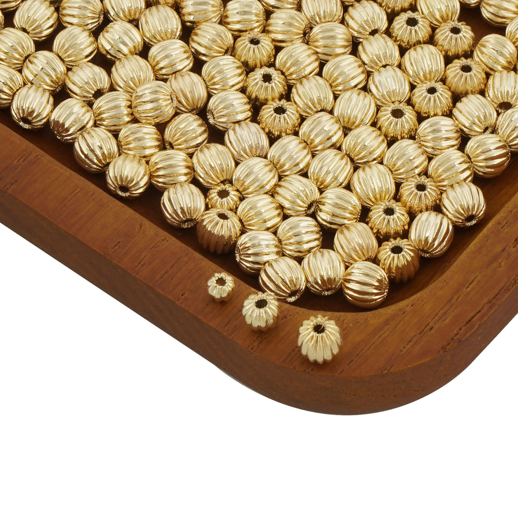 14k Gold Filled Round Corrugated Beads, the perfect bulk ball spacers for your jewelry making projects. Made from high-quality 14k gold-filled material, these spacer beads offer a durable and lasting shine that will enhance the beauty of your handmade jewelry creations.