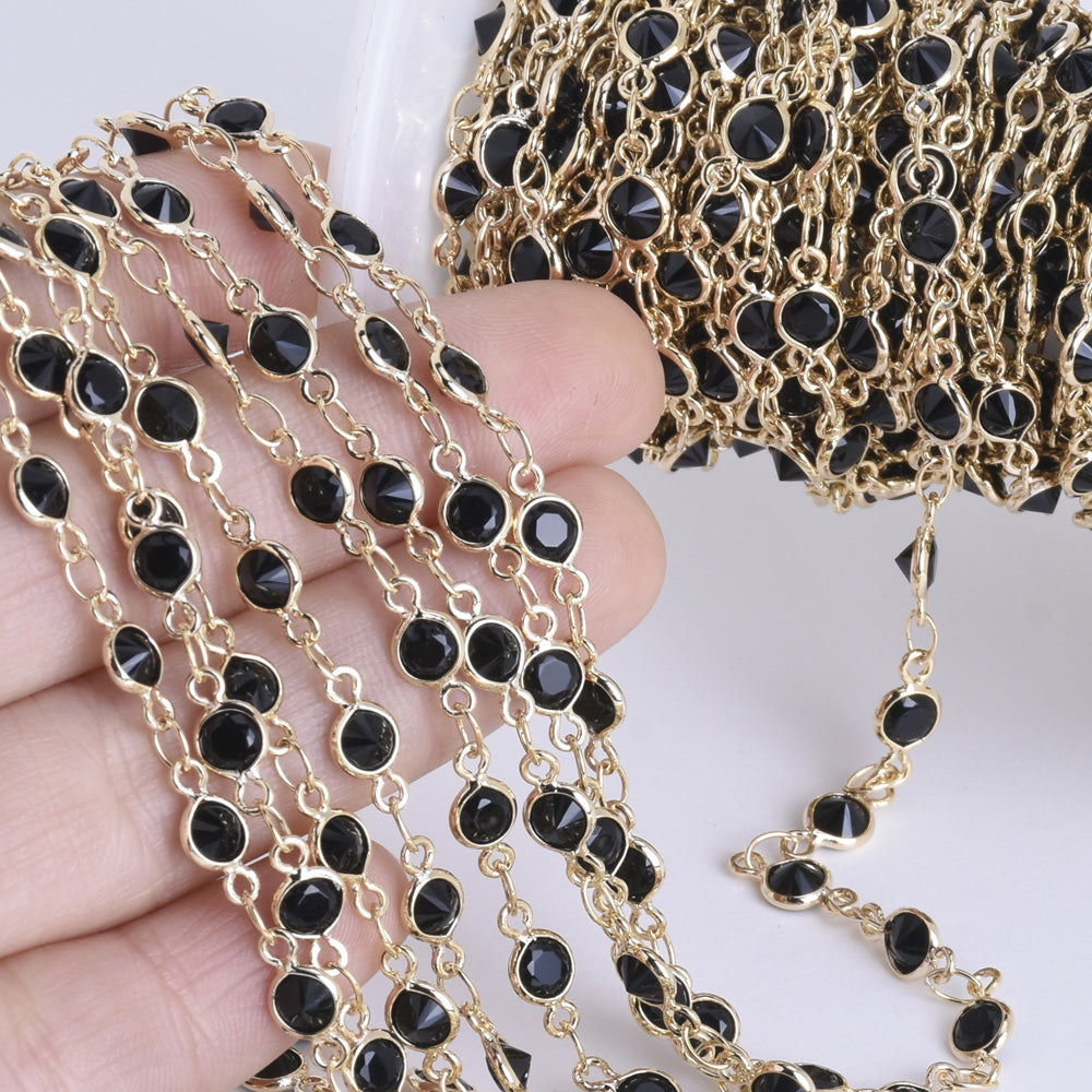 1 Foot 4mm Delicate Bezel Set Crystal & Brass Chain Bezel Set Crystals Glass Stones Connector Chain jewelry supplies 1pcs 10215150