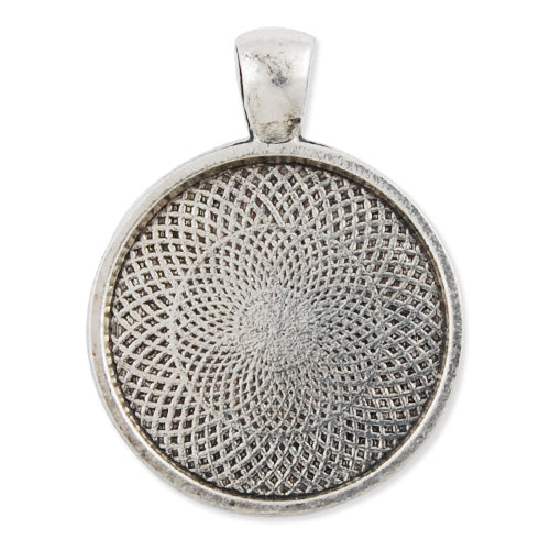 20 Antique Silver Round Zinc Alloy Cameo Cabochon Base Setting Pendants,fit 25mm cabochon