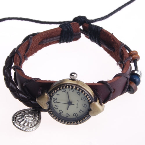2013-2014 Fashion Women Watch Bracelet Watches Retro Style Leather Handmade Antique Multilayer,Red Coffee,Drop charms,sold 10pcs per pkg