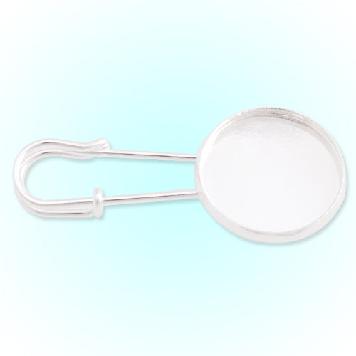 35MM Length Silver Plated shallow bottom Copper Brooch blank,with 18mm Round Bezel,fit 18mm glass cabochon,sold 20pcs per pkg