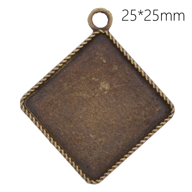 Antique Bronze metal pendant tray with 25x25mm Square bezel,20pcs/lot