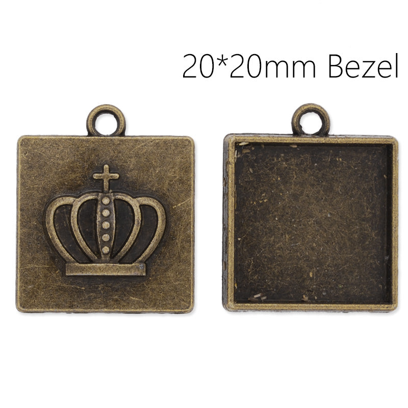 Antique Bronze pendant tray with 20x20mm Square bezel,another sided is Crown,20pcs/lot
